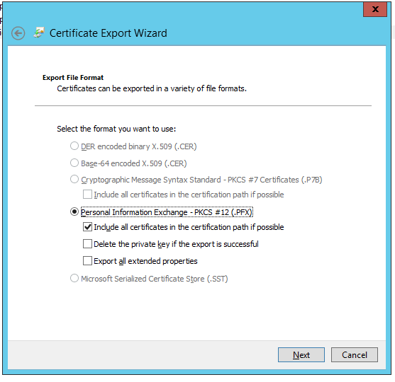 Export certificate