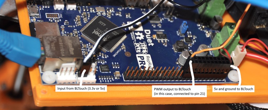 M280 P3 S120 I1; Test BLTouch. Using servo 3 (needs to be reverted with I1, when connected directly to Duet 0.8.5). S120 will cause it to extend/retract 10 times.
